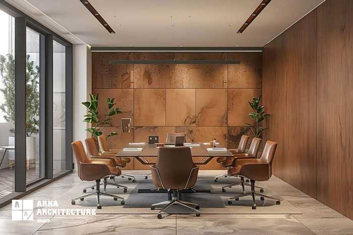 - تا حد امکان از دیوارهای شیشهای برای اتاق یا سالن کنفرانس استفاده نکنید تا علاوه بر حفظ حریم خصوصی در جلسات انعکاس صدا از طریق شیشه اتفاق نیفتد و صدای فرد صحبت کننده واضح باشد.