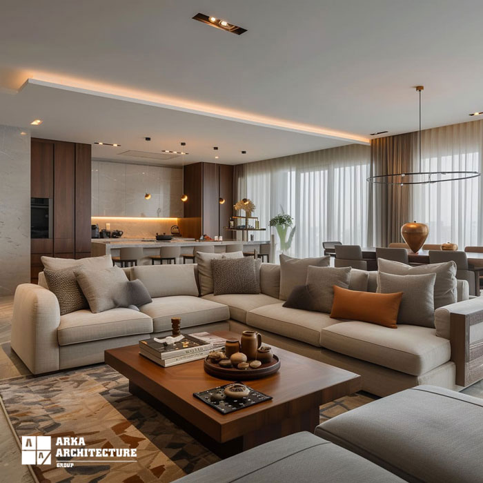 یکی از ویژگیهای بارز طراحی داخلی مدرن آرکا، توجه به جزئیات و ایجاد فضاهای باز و نورگیر است. این شرکت با استفاده از رنگهای ملایم و خطوط ساده، حس آرامش و راحتی را در فضاها ایجاد میکند. همچنین، آرکا به اهمیت ارتباط بین فضاهای مختلف و جریان طبیعی نور در طراحی توجه ویژهای دارد که باعث میشود هر فضا به طور منحصر به فردی جلوهگر شود.